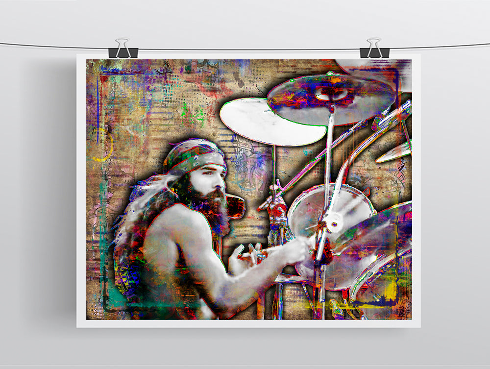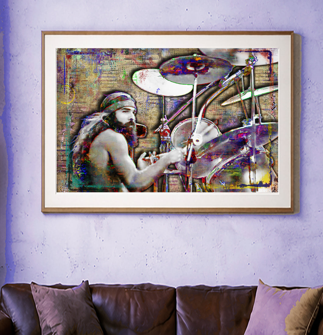 Celebrate the legendary sound of Lynyrd Skynyrd with this colorful Artimus Pyle drumming artwork. This handmade music print is designed for true fans of progressive rock and iconic musicians. A bold statement piece perfect for man caves, living rooms, bedrooms, offices, studios, and music spaces. It also makes a standout gift for any Skynyrd or classic rock fan.