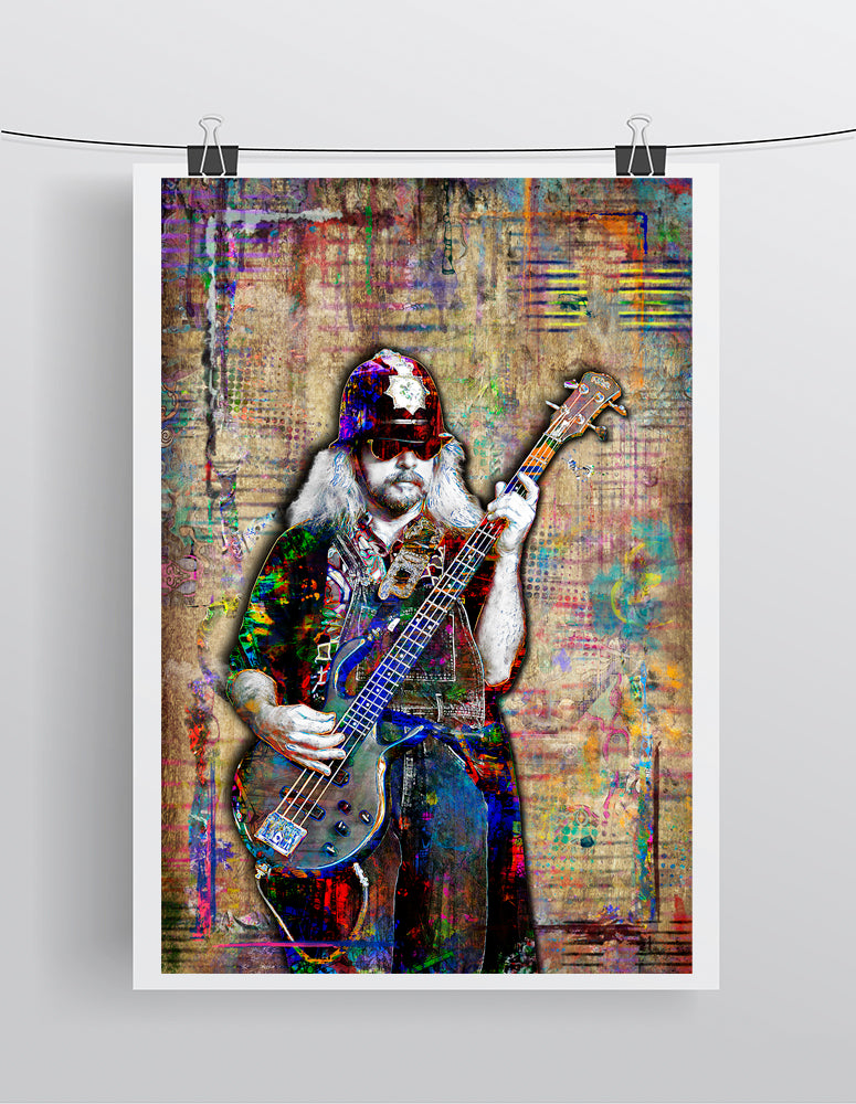Celebrate the legendary sound of Lynyrd Skynyrd with this colorful Leon Wilkeson bass artwork. This handmade music print is designed for true fans of progressive rock and iconic musicians. A bold statement piece perfect for man caves, living rooms, bedrooms, offices, studios, and music spaces. It also makes a standout gift for any Skynyrd or classic rock fan.